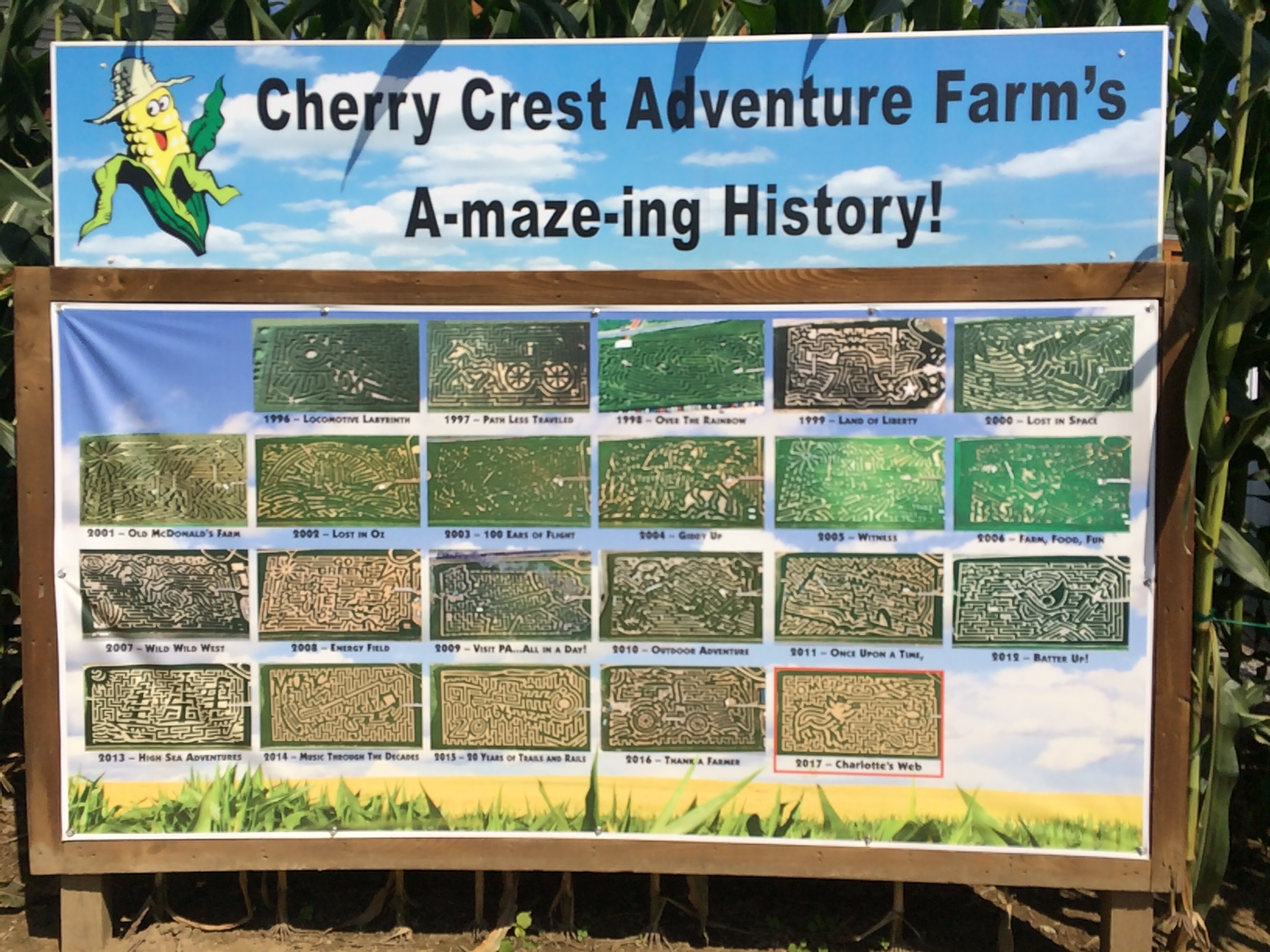 Completely worth mentioning here is the love Cherry Crest Farm puts into this maze. This year’s theme was Charlotte’s Web and from an aerial view that’s just what you got. Plus with color coded ropes in the maze you could tell which part of the design you were in the whole time. Their 22 years of a-maze-ing designs are proudly displayed at the entrance.